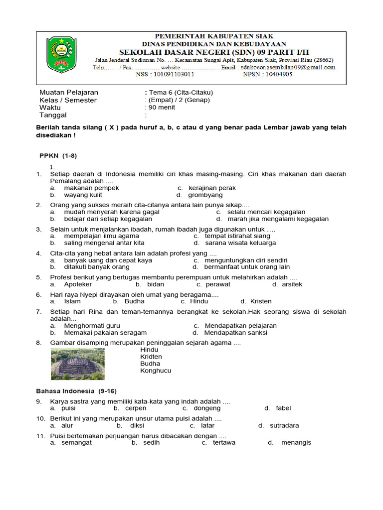 - "Kumpulan Soal PAT Kelas 4 Kurikulum 2013 Tema 6"