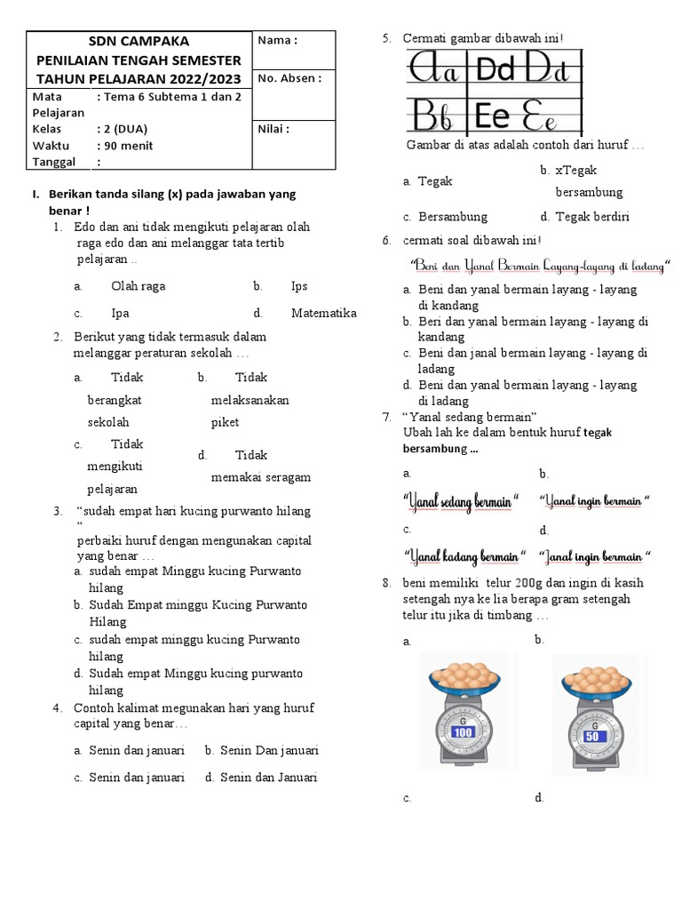 Memasuki kelas 2 Sekolah Dasar (SD), siswa diajak untuk lebih mendalami pemahaman tentang lingkungan sekitar melalui tema-tema yang relevan dan menarik. Salah satu tema yang krusial adalah Tema 6, yang berfokus pada "Lingkungan Bersih, Sehat, dan Asri." Pada subtema 1, siswa akan belajar tentang "Lingkungan Rumahku." Melalui serangkaian kegiatan dan soal latihan, siswa diharapkan mampu mengidentifikasi, memahami, dan menerapkan perilaku hidup bersih dan sehat di lingkungan rumah. Artikel ini akan membahas secara mendalam mengenai soal-soal yang relevan dengan tema ini, tujuan pembelajaran, serta bagaimana soal-soal tersebut dapat membantu siswa mencapai kompetensi yang diharapkan.