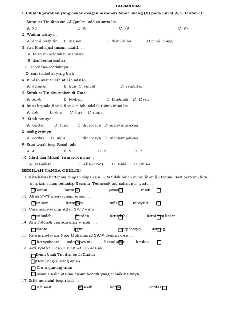 • Format yang Beragam: Carilah soal yang tidak hanya terdiri dari pilihan ganda, tetapi juga isian singkat, menjodohkan, atau esai singkat, sesuai dengan cakupan ujian yang sebenarnya.
